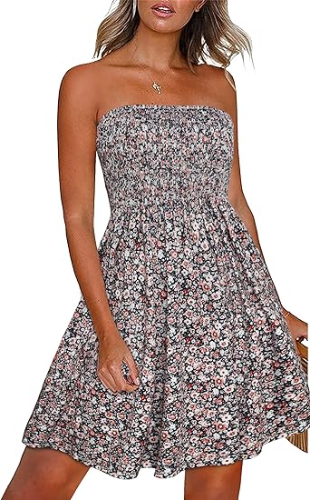 Summer Dresses for Women Beach Cover Ups Strapless Boho Floral Print Sundress