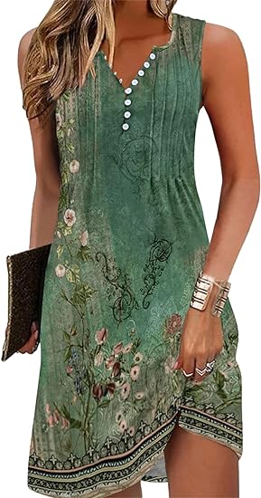 Beach Dresses for Women 2024 Vacation Swim Cover up V-Neck Summer Dress Button Down Sleeveless Boho Floral Sundress