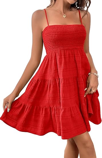 Women's Sundress Smock Cami Mini Dress Sleeveless Swing A Line Short Dresses Casual Cute Summer Dresses