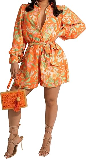 Women's Summer Long Sleeve Rompers Loose Fit Shorts Jumpsuits One Piece Beach Outfit 2024 Trendy