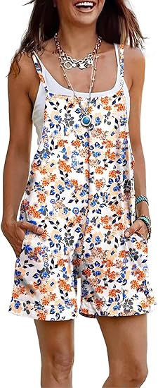 Women Summer Casual Loose Rompers Sleeveless Boho Floral Spaghetti Straps Shorts Overalls Jumpsuit with Pockets PH2