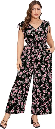 Plus Size Wide Leg Jumpsuits for Women Summer Sleeveless One Piece Outfit Elastic Waist Business Casual Jumpsuits