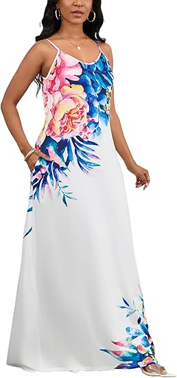 2024 Women's Casual Summer Floral Long Maxi Dresses Floor Length Sleeveless Plus Size Sundresses