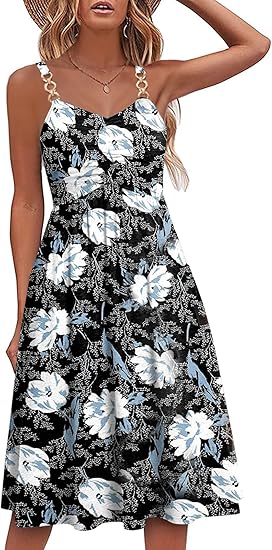 Summer Dresses for Women 2023 Floral Boho Sleeveless V Neck Spaghetti Strap A Line Casual Sundresses with Pockets