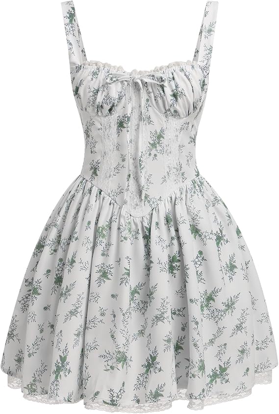 Women's Corset Mini Dress Spaghetti Straps Backless Lace up Low Cut Ruffle Short Dress Sundress